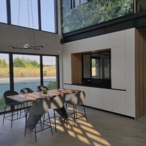 - Conception de mobilier sur-mesure (habillage mural et meuble caisse)